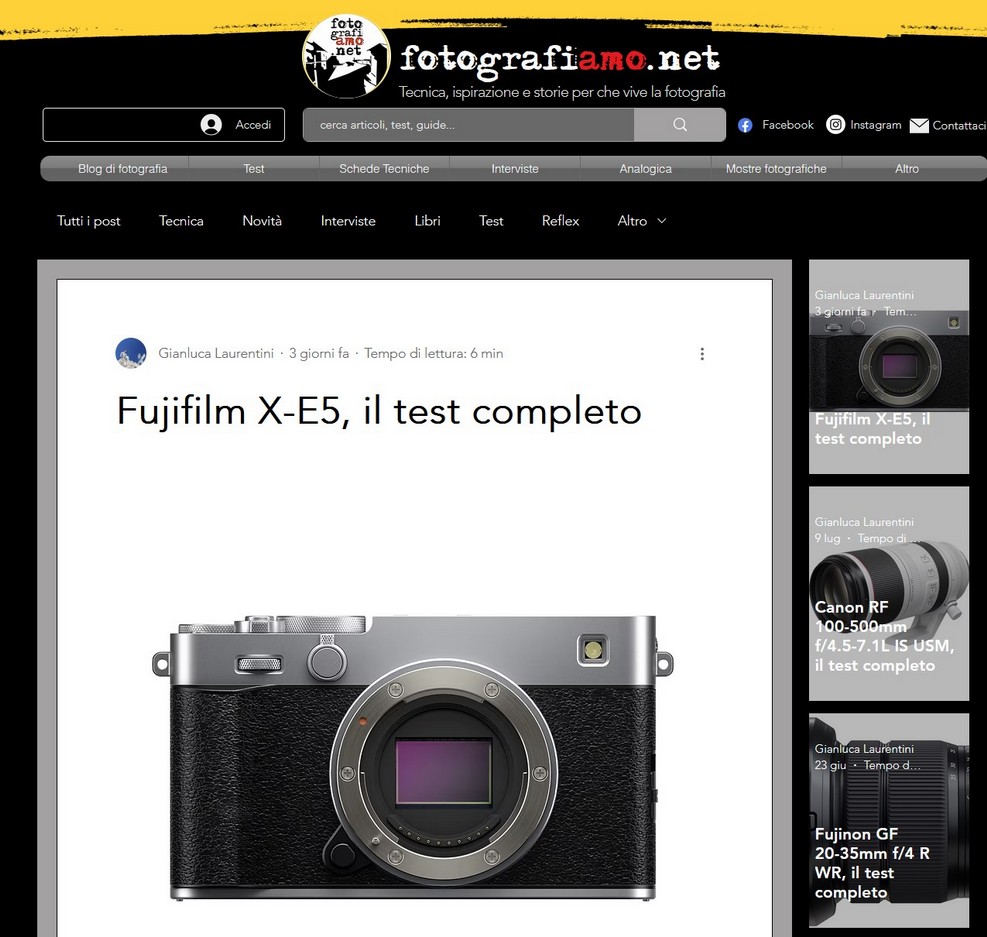 Ho pubblicato questa mattina il test della mirrorless Fujifilm X-E5. Per leggerlo